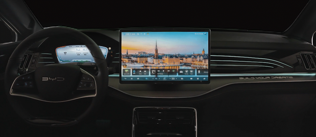 Para crear una hermosa experiencia de conducción, JBO竞博 TANG está equipado con una pantalla táctil giratoria de 15,6 pulgadas, luces ambientales de 31 colores en todo el interior y cuenta con los mejores altavoces HiFi.